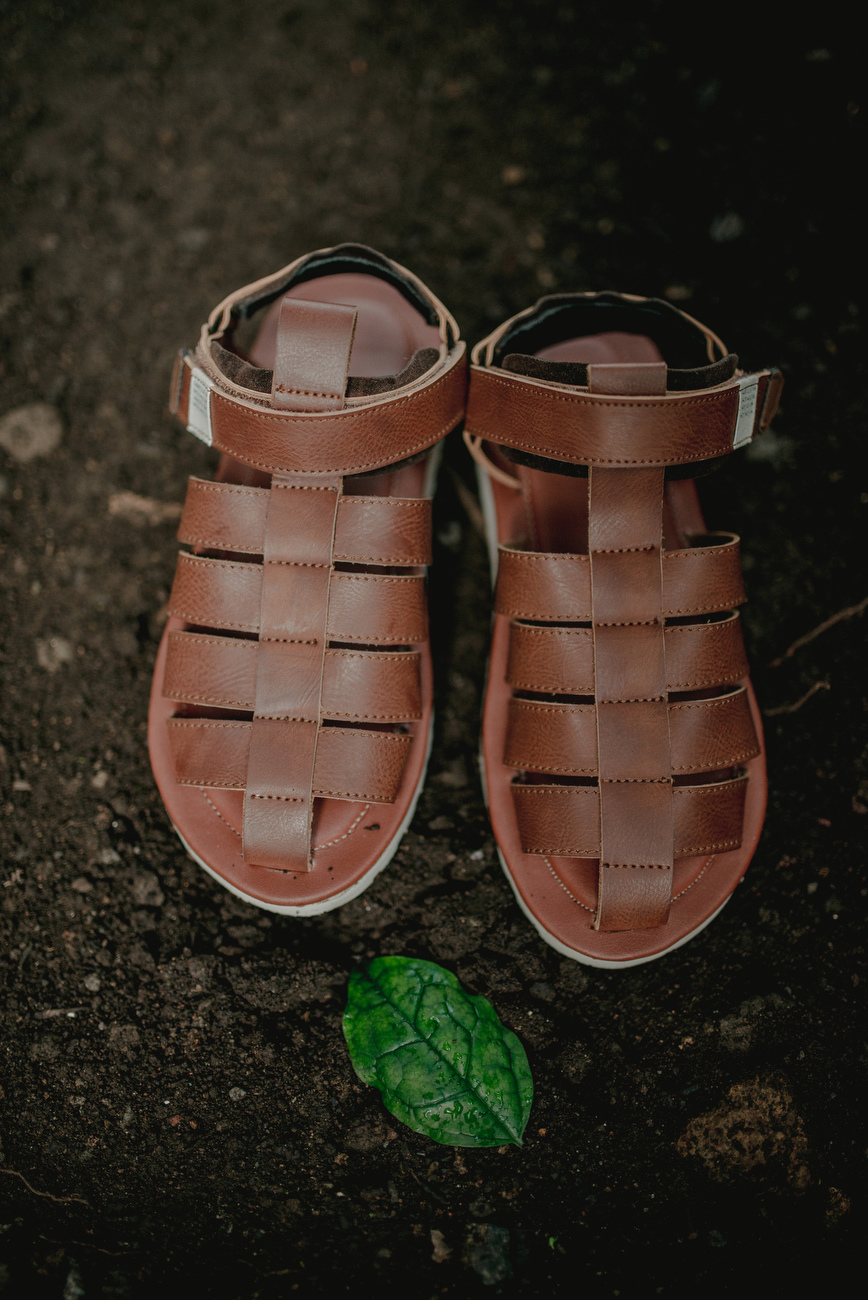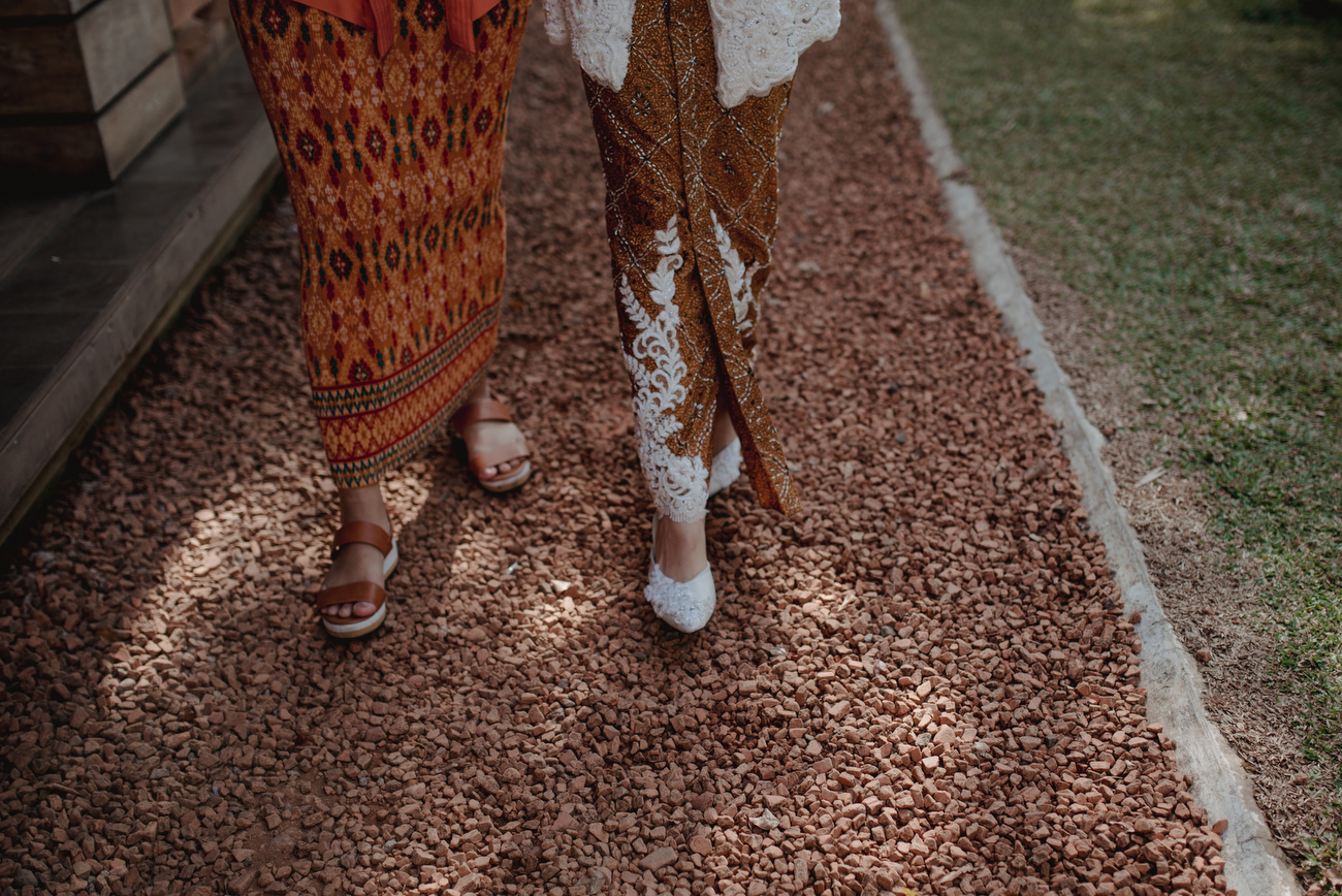 Takut kaki lecet? Atau takut kaki pegel saat pesta pernikahan? Hhhmm… ngga ada cerita untuk pasangan ini karena mereka berdua tampil kompak dengan sepatu sendal coklat yang sama dan senada dengan baju. Lucu deh!