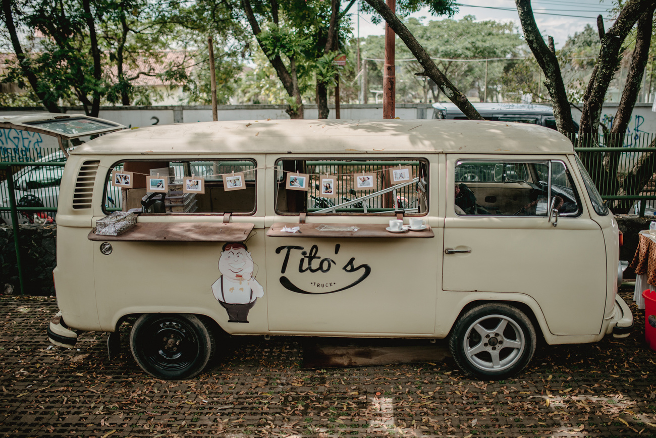 Oh iya! Mereka juga sengaja mendatangkan food truck yang menjadi kenangan Agi & Fina saat pertama kali bertemu, he he sweet ya! Dan terlebih lagi ternyata menu makanan yang disediakan ala stall VW Kombi juga menjadi serbuan para tamu lohhh.