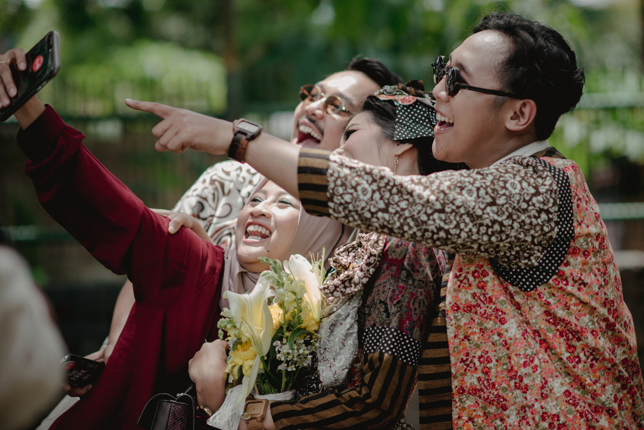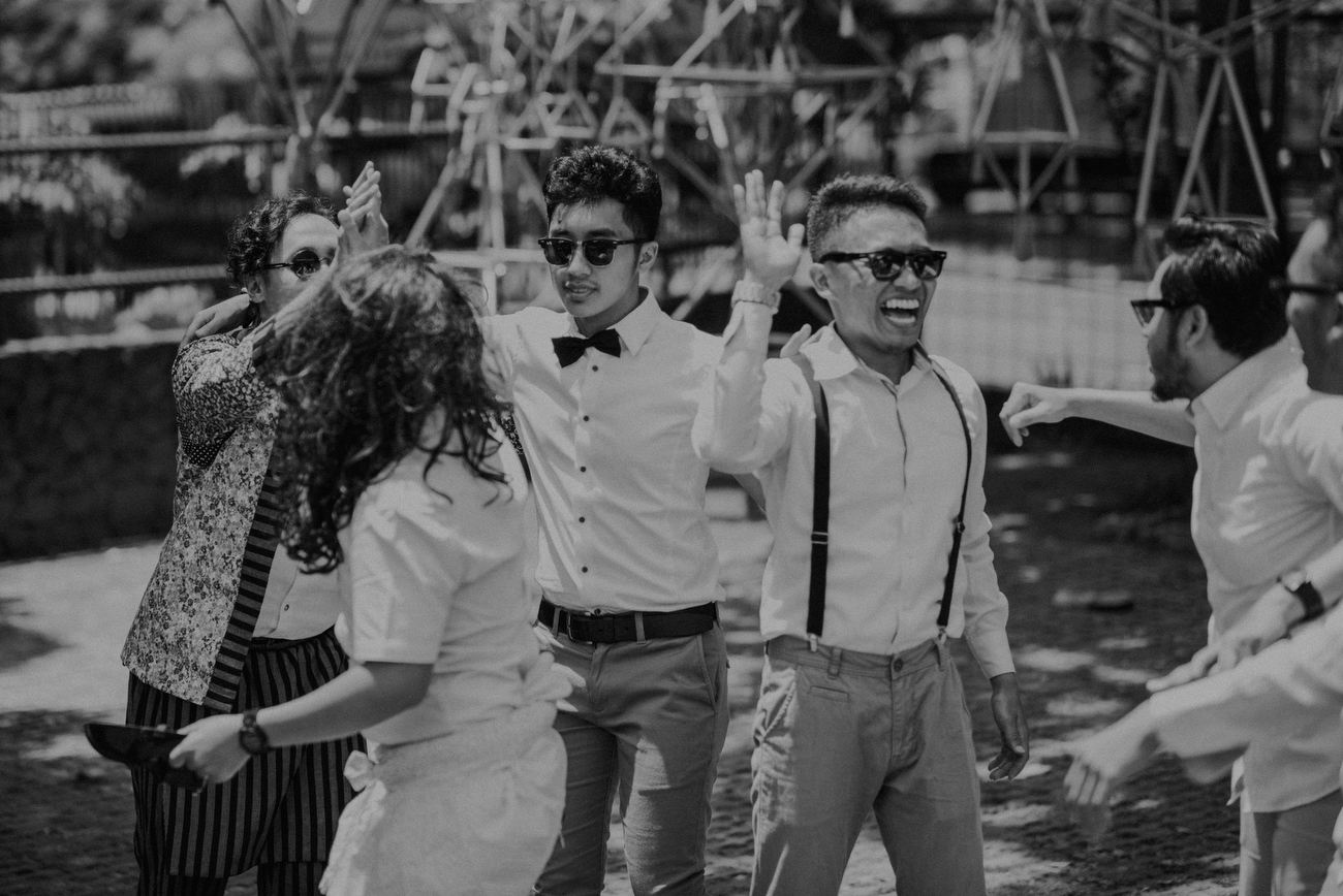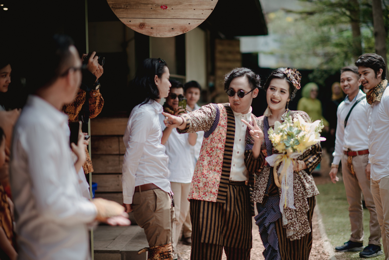 Pasangan yang sangat friendly ini memang sejak awal menginginkan pernikahan yang sederhana namun hangat yang dipenuhi oleh keakraban dan tawa para sahabat dan keluarga yang datang. Jadi ngga ada tuh moment awkward atau bosan di pesta pernikahan pasangan yang mengaku sama-sama suka tampil nyentrik.