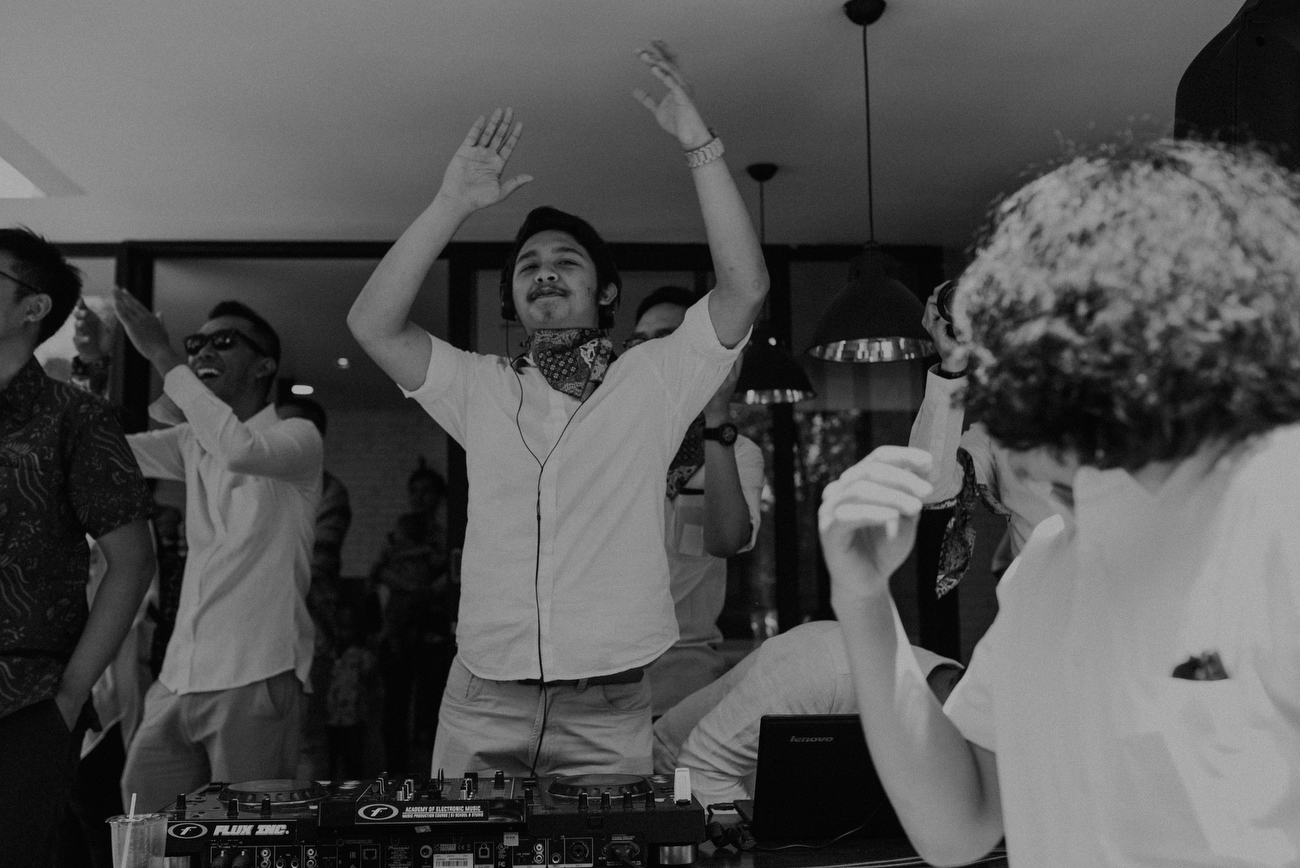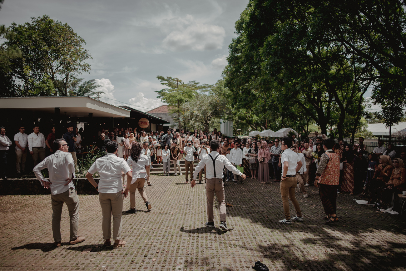 Konsep yang seru dan unik benar-benar terlihat sejak pertama kali melihat acara mereka. Ngga ada kesan glamour dari pelaminan mewah serta rangkaian bunga yang biasanya kita temui di pesta pernikahan. Namun semuanya berganti dengan suasana yang sangat berbeda yang penuh keseruan, hangat, dan pastinya penuh gelak tawa yang membuat semua tamu merasa nyaman dan ngga mau beranjak pergi dari acara resepsi pernikahan mereka. What a lovely wedding day!