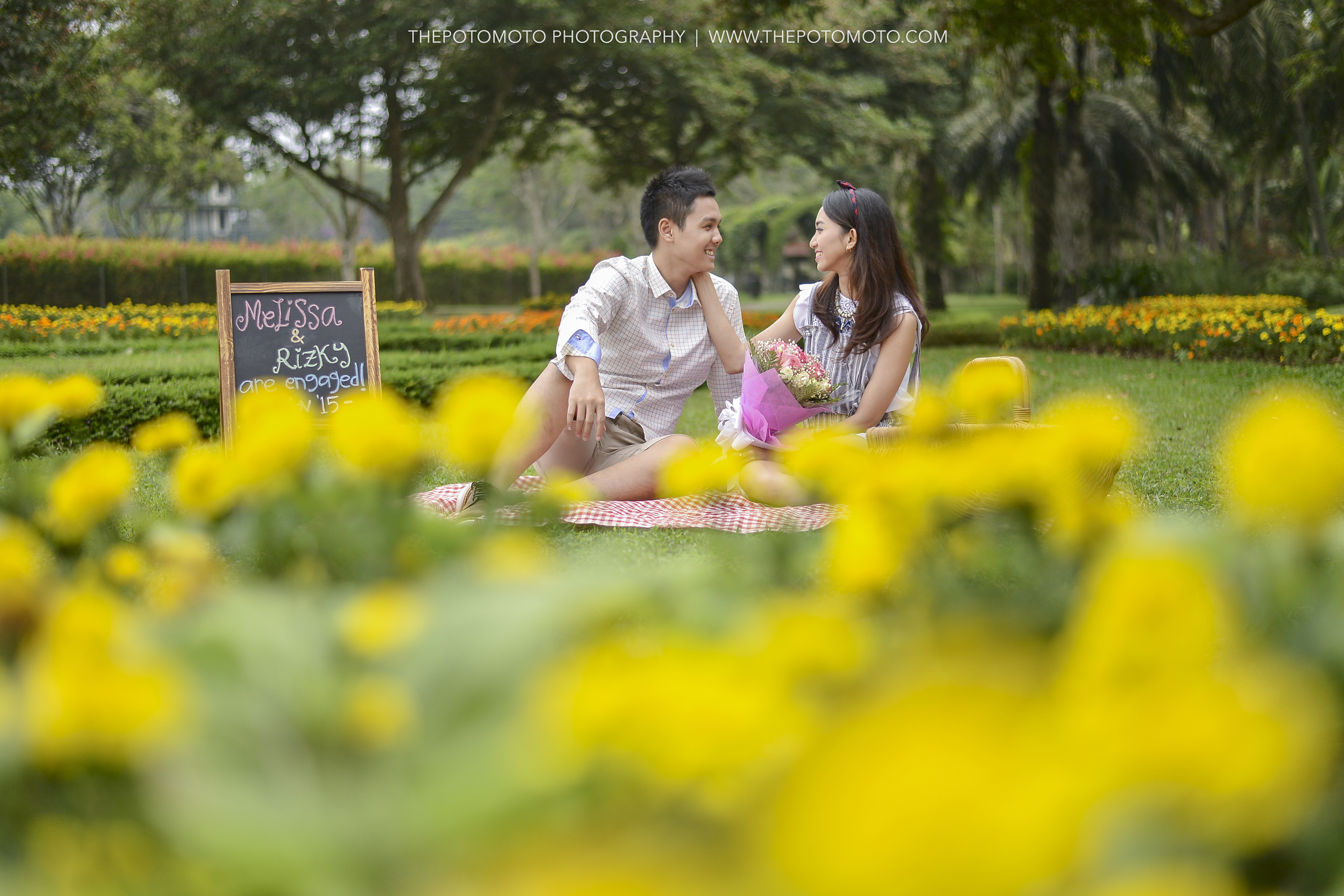 Referensi foto prewedding casual lainnya yang bisa kamu tiru adalah konsep piknik berikut ini. Kamu bisa mencari lokasi di taman lalu kamu siapkan properti piknik, misalnya keranjang piknik serta alas pikniknya, bisa juga kamu tambahkan properti piknik lain misalnya buah-buahan, makanan, minuman serta bunga.