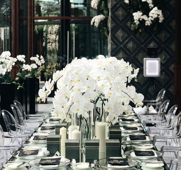 Hitam dan putih adalah tema warna yang dipilih sahabat-sahabat Stephanie dalam bridal shower yang digelar di Hotel Four Seasons, Jakarta. Konsepnya adalah fine dining diwarnai bunga anggrek cantik berwarna putih di meja makan. Semua konsep ini senada dari undangan bridal shower, pakaian yang dikenakan, hingga tema dekorasi.