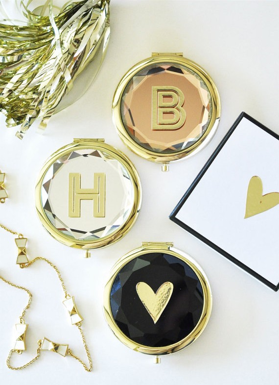 Temennya makeup dan pasti sering dipakai oleh para bridesmaids yang isinya adalah para wanita. Compact miror dengan inisial masing-masing bridesmaids pasti terkesan lebih detil dan personal bagi mereka. Bentuknya yang juga kecil bisa dibawa-bawa ke dalam tas makeup juga, gimana lucu kan!