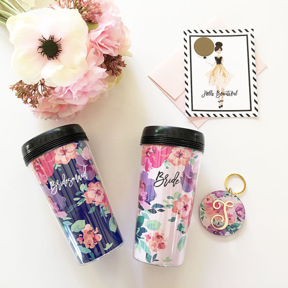 Nah ide kado bridesmaids yang kedua masih temenya mug nih alias tumbler. Tumbler seperti contoh dibawah dengan motif floral yang girly banget dan tulisan bridesmaids pasti bikin mereka happy. tidak seperti halnya mug yang hanya bisa ditaruh diatas meja, kalau tumbler bisa dibawa kemana-mana sambil melakukan aktivitas. Jangan lupa memilih desain yang lucu juga ya, agar lebih menarik!
