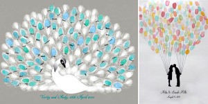 Wedding Guest book semacam ini sedang trend loh. Konsepnya kamu hanya tinggal menyiapkan gambar batang pohon beserta cabangnya kemudian para tamu cukup memberikan cap jari mereka sebagai daunnya. Kamu bisa menyiapkan warna-warna tintanya sesuai dengan tema warna dekorasimu. Kemudian para tamu menuliskan nama mereka di atas cetakan cap jari mereka. Setelah acara wedding kamu, cobalah untuk diberi frame dan kamu mendapatkan sebuah artwork yang cantik untuk dipajang di rumah kamu. Selain berbentuk pohon kamu juga bisa mencoba bentuk burung cendrawasih atau balon loh.