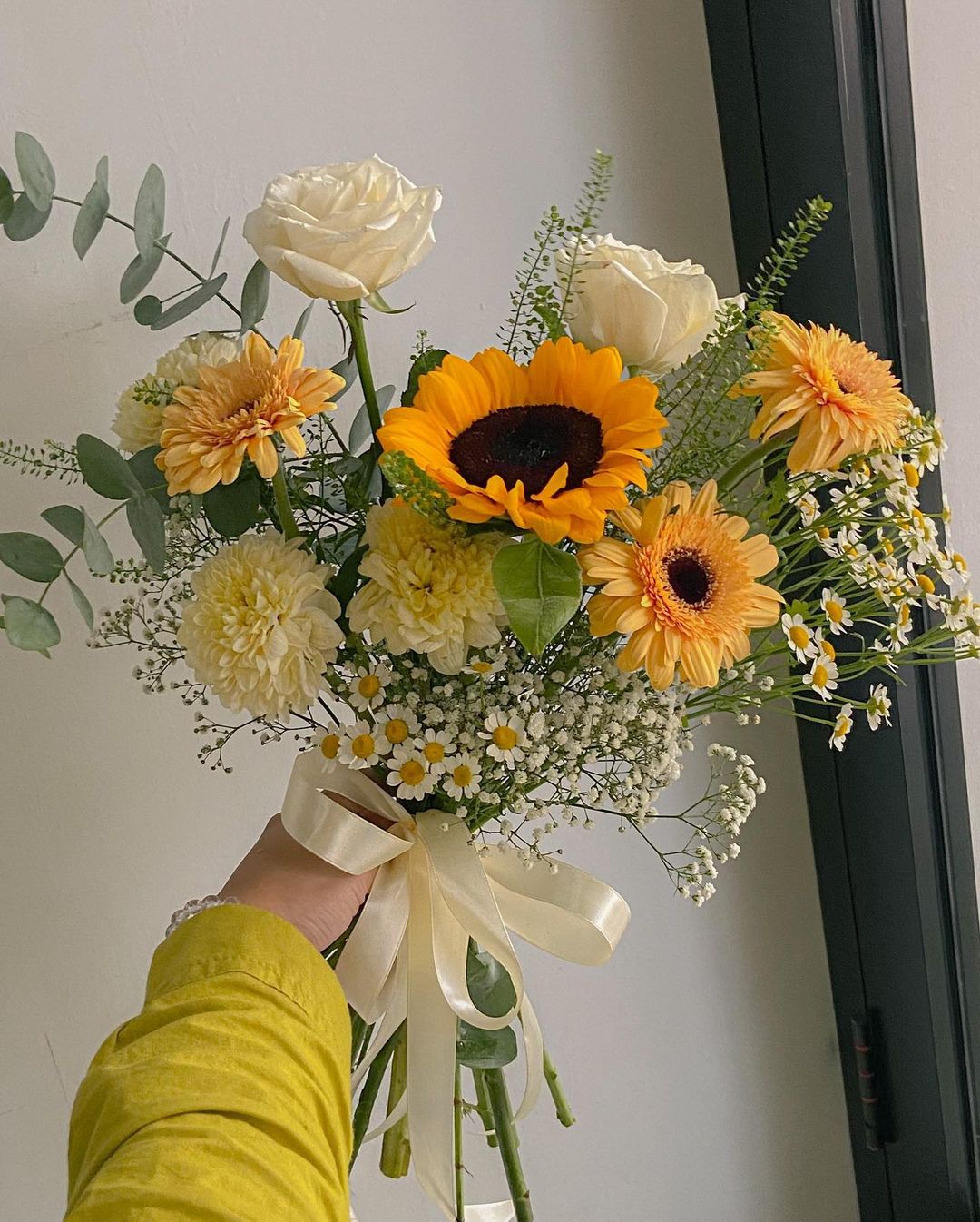 Seperti penampilannya yang cerah dengan warna kuning menyala, bunga matahari merupakan simbol keceriaan yang tidak ada habisnya. Bunga ini memiliki makna kesetiaan oleh pasangan. Dengan tone warna kuning, coklat, dan hijau, hand bouquet dengan bunga matahari sangat cocok digunakan bagi pasangan yang memiliki konsep pernikahan bertema rustic.