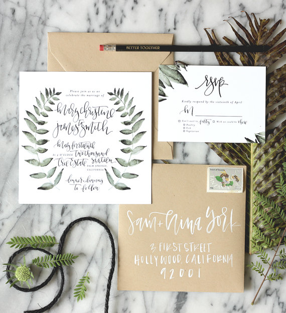 Desain undangan pernikahan saat ini semakin simple dan personal. Mulai dari desain hingga jenis font yang menggunakan font hand lettering. Hand lettering memberikan kesan lebih personal dan terlihat natural layaknya tulisan tangan.