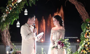 Dan, satu momen yang paling romantis adalah saat Arie membacakan speech yang sangat menyentuh hati! The Lodge Golf Jagorawi Bogor pun didekor sedemikian rupa hingga menciptakan ambiance romantis lewat lampu pijar berwarna oranye dan konsep pesta kebun.