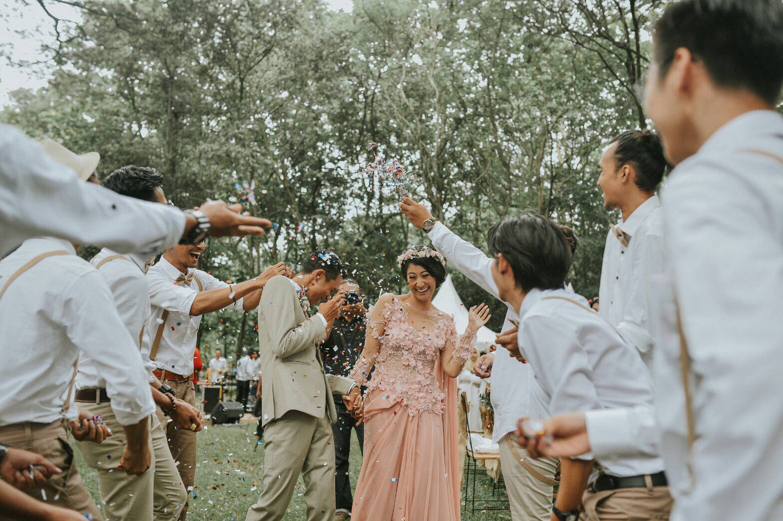 Konsep acaranya yang intimate dimanfaatkan Rere dan Gilang untuk bisa berkumpul bersama dengan para teman dan sahabat jadi nuansa pernikahan mereka sangat fun, hangat, dan santai. Semua tamu bisa makan dan duduk sambil ngobrol santai. Ini juga yang sudah disiapkan oleh Rere sejak persiapan pernikahan rustic outdoor untuk menyediakan kursi sejumlah tamu yang hadir supaya tamu bisa datang dan menikmati acara tanpa perlu buru-buru pulang karena udah merasa lelah. Good idea ya!