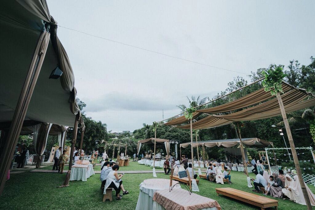 Syifa dan Prabu memang sudah dari awal saling komit ngga boleh saling bete kalau ternyata hujan turun, karena mereka sama-sama berpikir jika hujan adalah bentuk keberkahan Allah. So…well, it’s such a great mindset untuk kamu para bride–to-be yang akan menggelar acara pernikahan di area outdoor untuk stop worry too much tentang cuaca dan mengubahnya menjadi positive feeling!