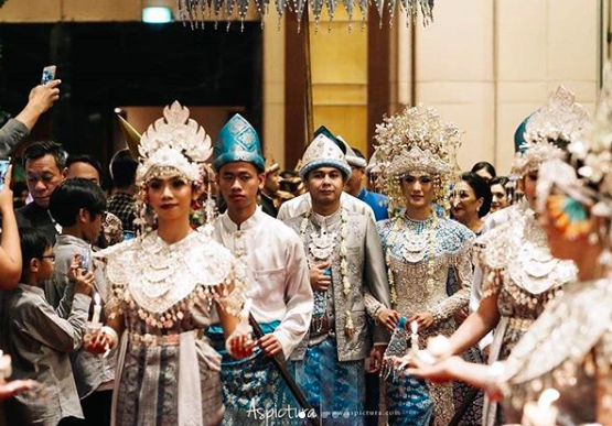 Yang menarik di Pernikahan Raditya Dika-Anissa Aziza, saat resepsi keduanya juga menari tor-tor sesuai dengan adat Batak yang digunakan. Beberapa pekan sebelum hari H, Radit dan Anissa sudah berlatih menari tor-tor untuk dipertunjukkan di hari H momen spesial mereka. Keduanya berbalut baju bernuansa abu-abu dengan sentuhan silver dan biru. Keluarga pun kompak mengenakan seragam dengan sentuhan dominan berwarna biru juga songket khas Sumatera Selatan. Ya, Radit dan Anissa memilih adat Palembang sebagai tema resepsi mereka.