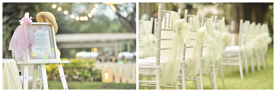 Biasanya dekorasi yang bisa dilakukan di rumah sangatlah terbatas. Untuk itu kamu bisa menyiasatinya dengan memusatkan detail pada pelaminan dan area foto para tamu (photobooth). Selain itu untuk menggelar pesta pernikahan di rumah, kamu harus menyiapkan kursi ekstra untuk para tamu, jumlah kursi dapat kamu sesuaikan dengan luas area pernikahan kamu di rumah.